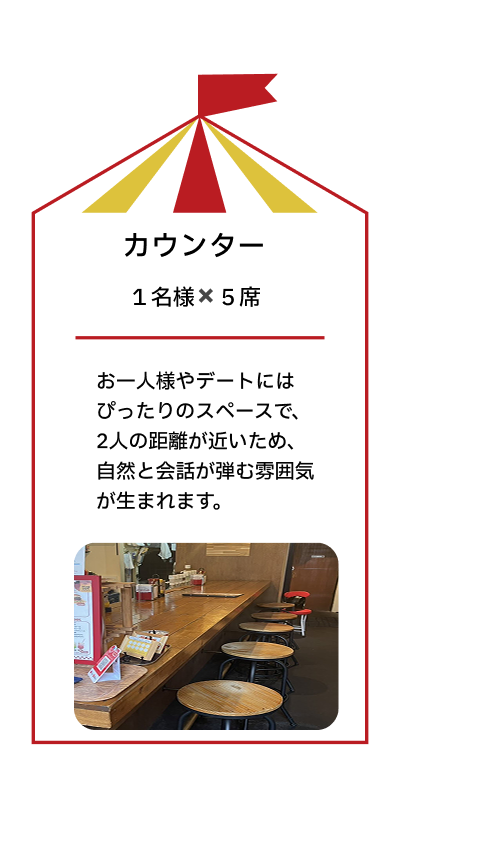 お席も多数あり、おひとり様から大人数まで